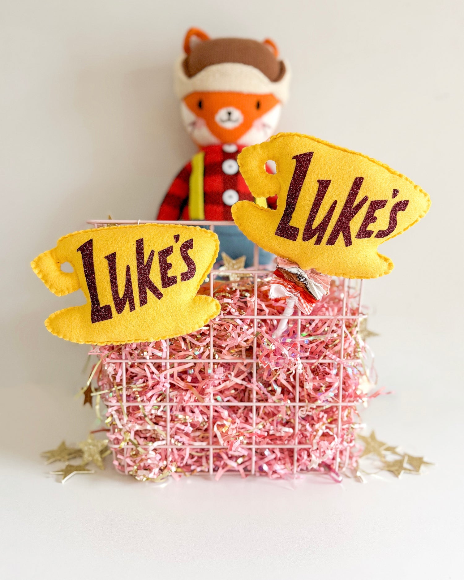 Handmade felt coffee cup inspired by Gilmore Girls. Use as an ornament, present topper, basket tag, or as decor by hanging on walls, shelves, and hooks. Wand should be used for decor purposes only.
