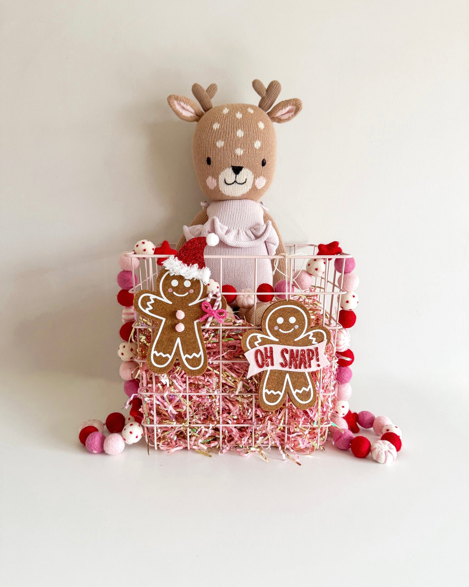 Felt gingerbread ornament. Use as an ornament, present topper, stocking or basket tag, or as decor by hanging on walls, shelves, and hooks.