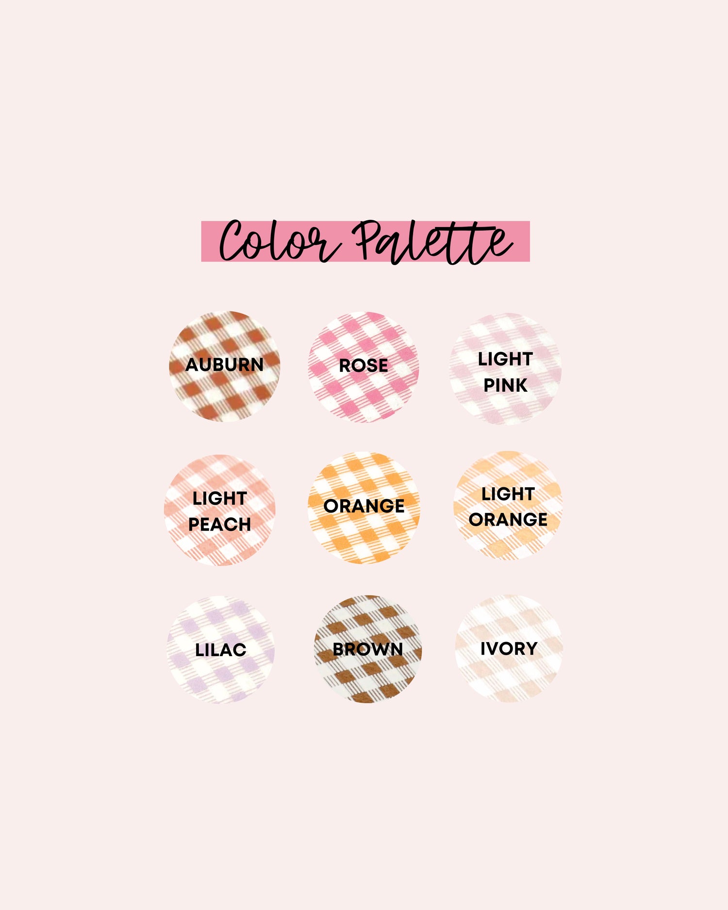 Colors in first photo are light peach and auburn.